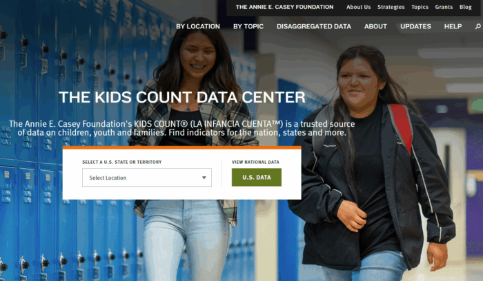 A project of the Annie E. Casey Foundation, KIDS COUNT is the premier source for data on child and family well-being in the United States. Access hundreds of indicators, download data and create reports and graphics on the KIDS COUNT Data Center that support smart decisions about children and families. To view this resource visit www.datacenter.kidscount.org.